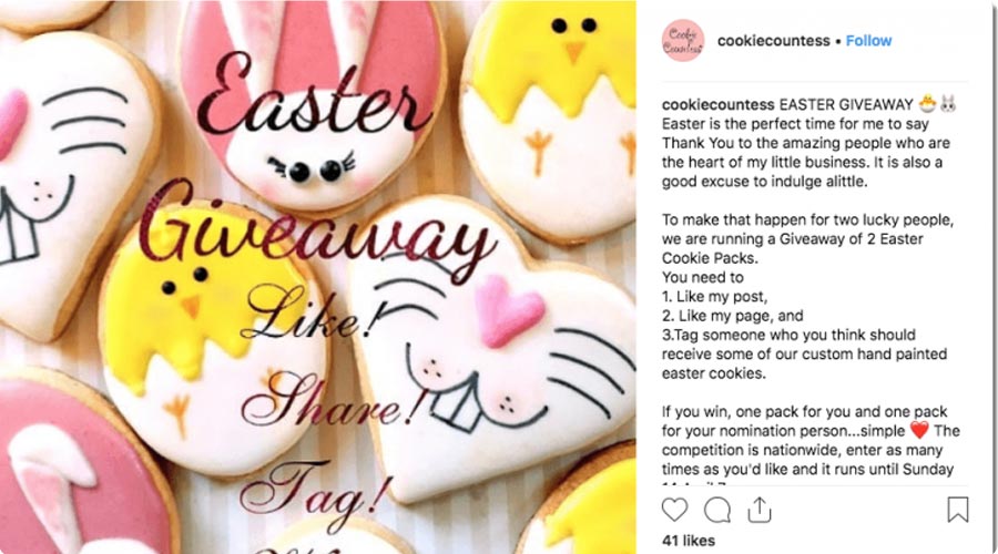 Look at this small giveaway from this cookie business. Giveaways generate excitement, engage your audience, and increase brand visibility.