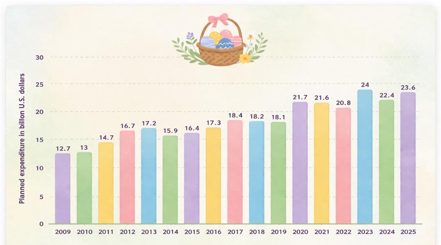 In the last few years, Easter sales continue to show a clear upward trend, showing us the importance of this holiday and marketing around it. As the graph illustrates, planned Easter spending has steadily increased over the years, reaching over $20 billion in recent seasons. This growth highlights a consistent rise in consumer demand, making Easter one of the key opportunities for Shopify stores to boost revenue, increase average order value, and attract both new and returning customers.